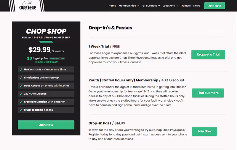 [Updated May 2025] Today, Chop Shop Physiques has grown to 3 locations with a 4th opening later this month. Chop Shop continues to integrate innovative online solutions to make signing up and accessing their gym as frictionless as possible, leveraging their high-traffic website for an entirely online registration process.